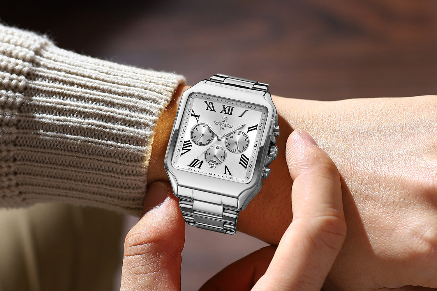 Montre homme chronographe Reward RD812265M — mouvement quartz haute précision, boîtier & bracelet acier inoxydable, design business élégant, résistante et polyvalente.
