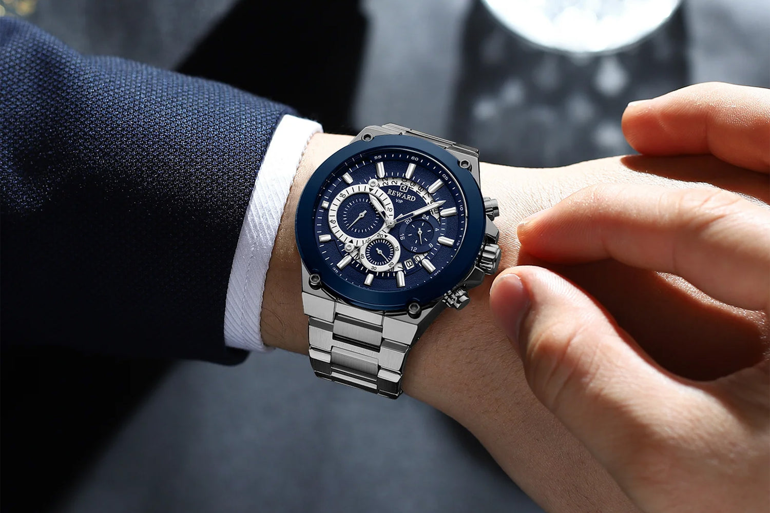 Reward-Montre Homme de Luxe en Acier Inoxydable & Chronographe