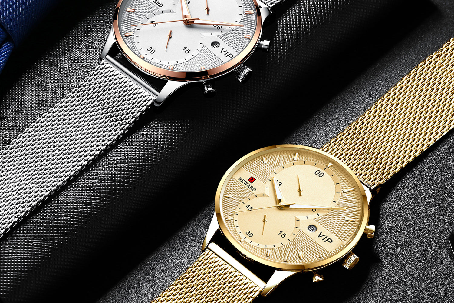 La Reward RD82001M est une montre chronographe de luxe pour homme, avec mouvement quartz précis, bracelet maille acier inoxydable et étanchéité 3ATM.